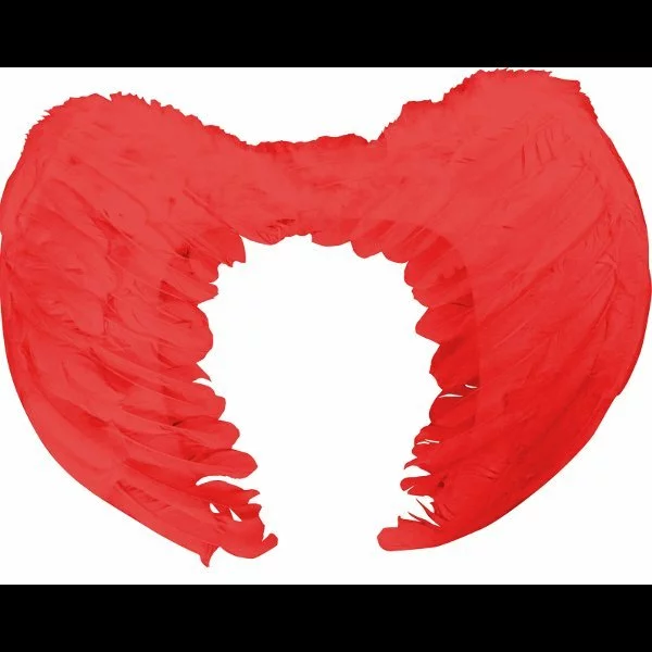 Ailes d’anges, en plumes rouges avec bretelles- 33 X 34 cm.