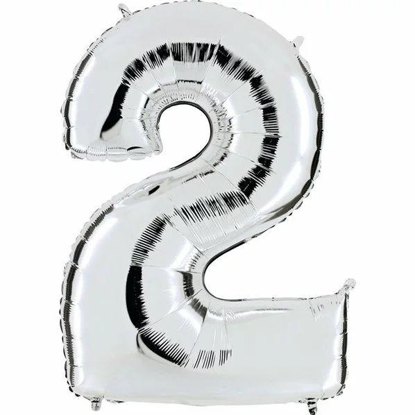BALLON CHIFFRE 2 ALU METAL ARGENT 40 CM