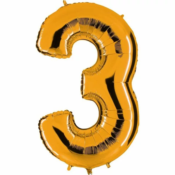 BALLON CHIFFRE 3 ALU METAL OR 35 CM