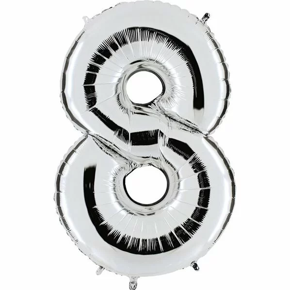 Ballon alu chiffre 8 argent d’une hauteur de 40 cm.