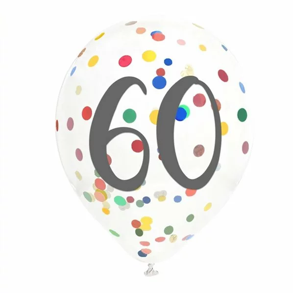 BALLONS 60 ANS EN LATEX CONFETTIS – SACHET DE 6