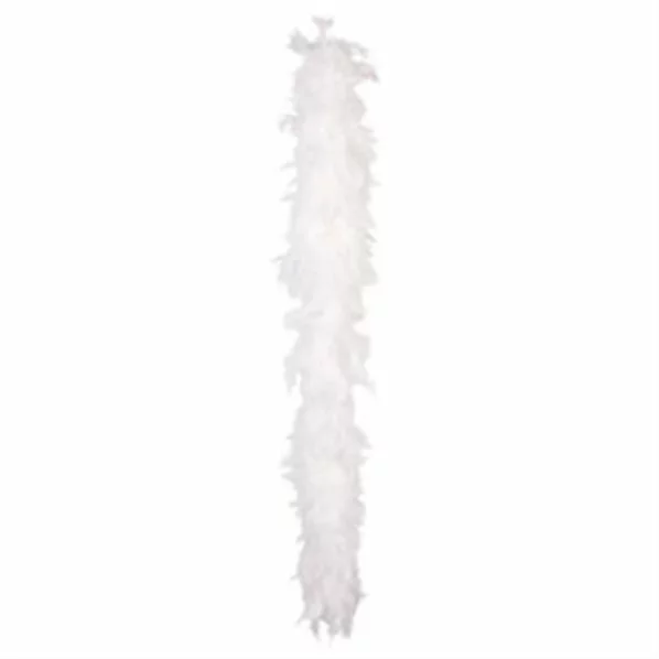 Boa luxe blanc, en plumes, ignifugé, anti-allergique, d’une longueur de 1,80 m, 50 grammes environ.