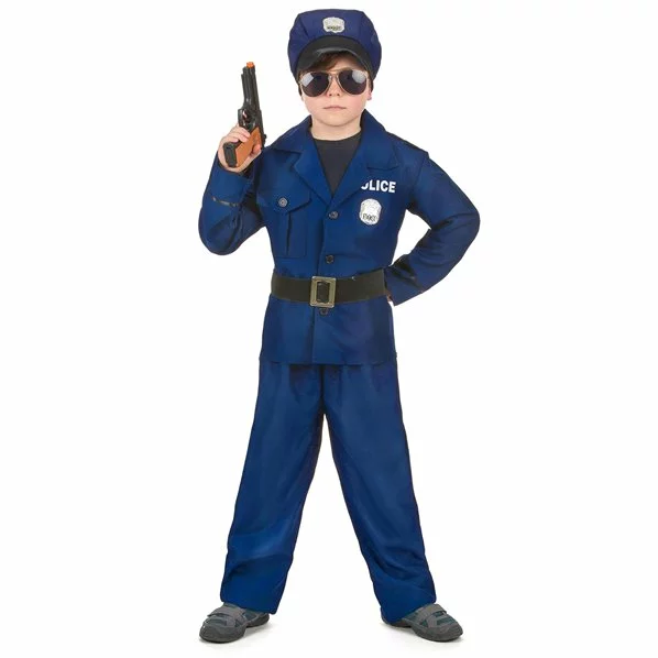 Ce déguisement de policier pour garçon 4 à 6 ans (110-120 cm) se compose d’une veste à manches longues avec le badge , d’un pantalon élastiqué à la taille, d’une ceinture à boucle et de la casquette assortie. 100% polyester.