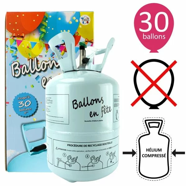 Les bouteilles dhélium sont très faciles à utiliser et sans danger, livrées avec lembout de gonflage et une notice dutilisation en français. Son système de valve breveté garantit l absence totale de perte dhélium. Il suffit douvrir le robinet de la bouteille dhélium et dappuyer sur le flexible pour gonfler vos ballons en quelques secondes.