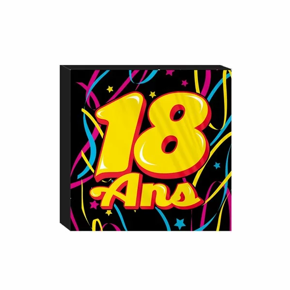 SERVIETTES 18 ANS EN PAPIER 33 X 33 CM – PAQUET DE 20