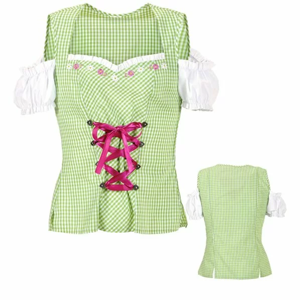 Chemisier bavaroise vert avec broderies et ruban, taille L (40/42), 100 % polyester.