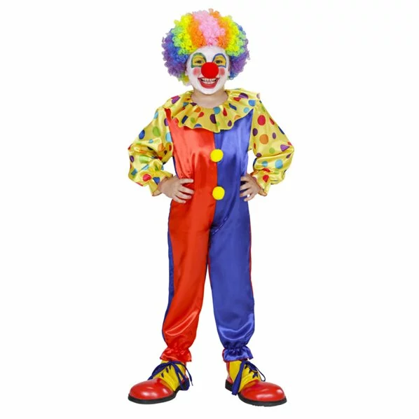 Costume clown pour enfant de 4 à 5 ans comprenant la combinaison satinée avec une fermeture éclair.