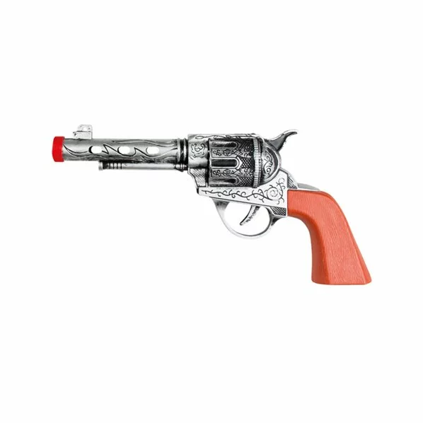 Pistolet de cow-boy en plastique d’une longueur de 20cm environ. Coloris assortis, noir ou marron, envoi selon disponibilités.