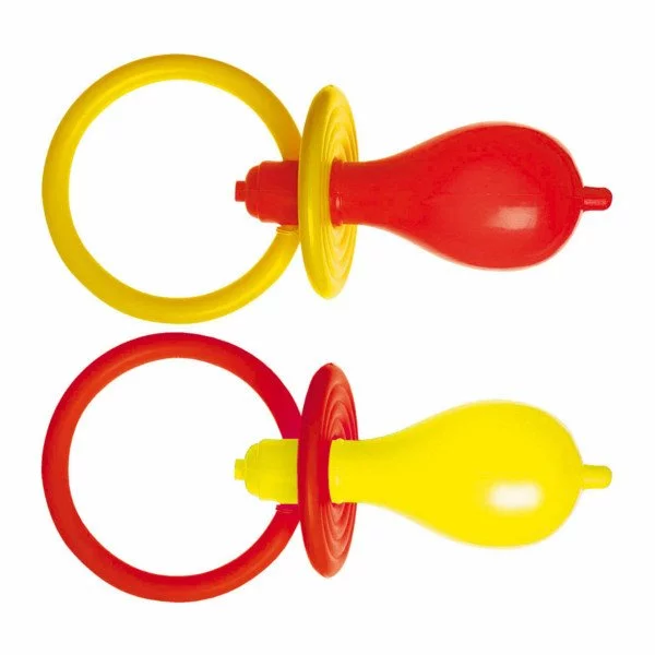Tétine géante en plastique avec son, jaune ou rouge (envoi selon disponibilités).